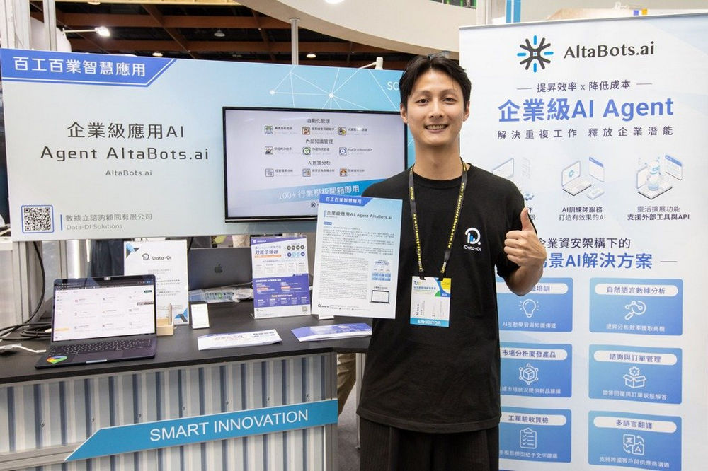 ▲數據立諮詢公司展出「企業級應用 AI Agent AltaBots.ai 」。 亞矽執行中心/提供。