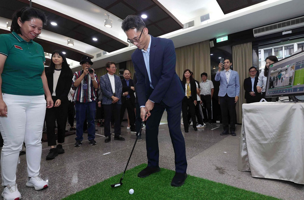 在「科技產業運動化」,所展示之「智慧高球服務系統」,首創可攜式複合感知一體機,能即時提供揮桿動作回饋,並以輕量化設計大幅縮短建置時間,適用於各類高爾夫場域,引領高球訓練走向行動化與智慧化,並帶動國內設備製造業者投入研發升級為方案供應商。同時,「高爾夫 AI 虛擬教練」及「體適能 AI 檢測與訓練服務」可全面分析選手動作與體能狀態,並自動生成個人化訓練方案,協助民眾自學,也支援教練進行專業指導。已於 2025 世界壯年運動會實際導入揚昇球場及霧峰球場。郭肇中司長強調,從原鄉到城市、從一般民眾到國手級選手,這些運動產業科技化之創新服務證明科技正讓每個人都能以更智慧、更安全的方式投入運動生活,並以軟硬整合虛實融合運動,打造之典範應用範例與創造運動高值化方案。